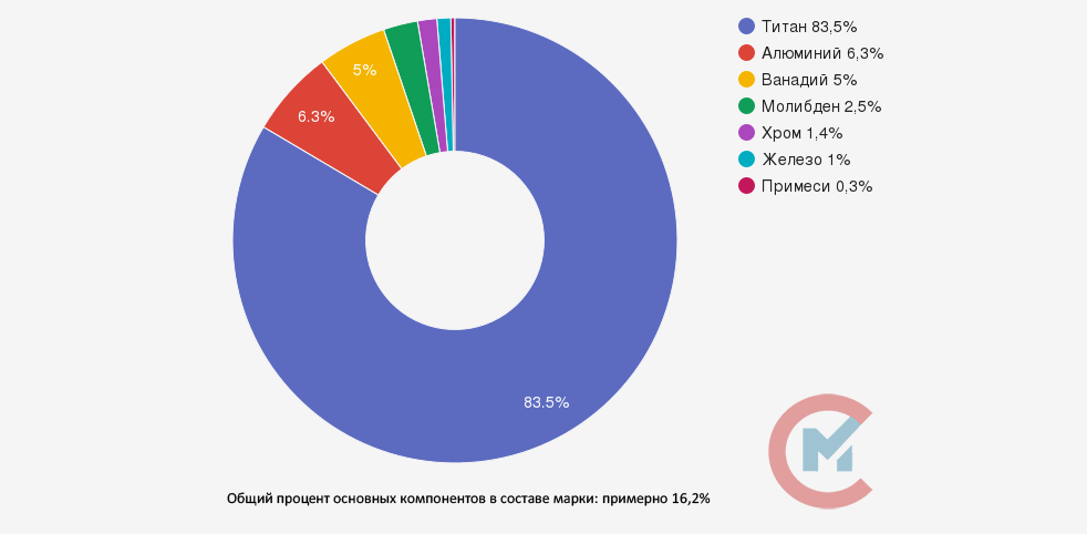 Буква «В» означает, что сплав разработан во Всероссийском научно-исследовательском институте авиационных материалов (ВИАМ), «Т» обозначает металл — титан. Далее идет цифра 23, которая указывает на порядковый номер сплава.